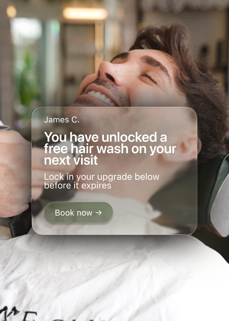 Nudge customers to book their next visit right after their cut, before their rewards expire and when they're due back.