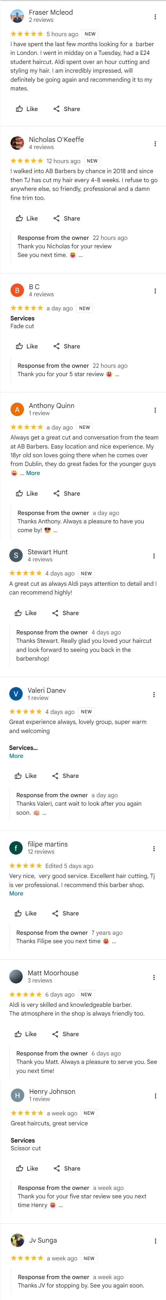 In their first week of getting reviews with BarberOne, a Central London barbershop acquired 9 reviews in a single week, all 5* and all descriptive, boosting their rankings without even paying for ads.